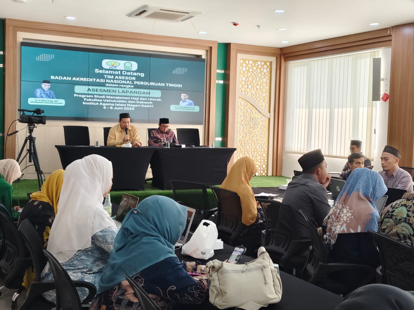 LPM UIN Syekh Wasil Kediri, Hari Senin tanggal 30 Juni 2025 bertempat di Aula Gedung R SBSN dilaksanakan simulasi asesmen lapangan akreditasi BAN PT Program Studi Manajemen Haji dan Umroh (MHU) yang a